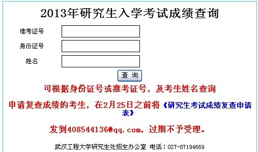 "2013年武漢工程大學(xué)碩士研究生初試成績(jī)查詢" 相關(guān)文章推薦