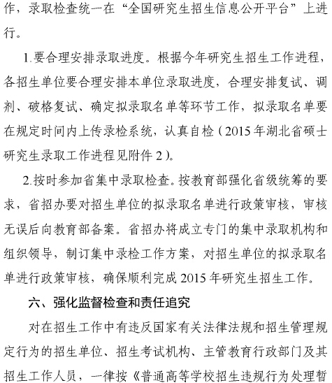 2015年湖北省招辦關(guān)于做好碩士研究生錄取工作通知