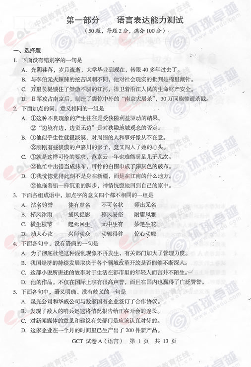 2012-10-292012-10-292012年湖北GCT考試語(yǔ)文真題(B卷)湖北 2012年GCT考試語(yǔ)文真題(B卷) 點(diǎn)擊進(jìn)入 2012年湖北GCT考試語(yǔ)文真題(B卷)