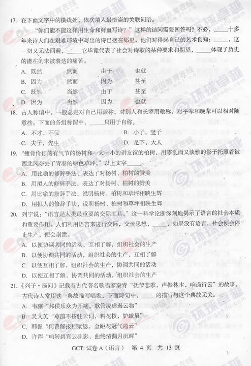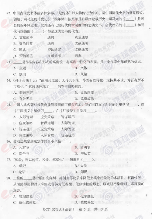 2012-10-292012-10-292012年湖北GCT考試語(yǔ)文真題(A卷)湖北 2012年GCT考試語(yǔ)文真題(A卷) 點(diǎn)擊進(jìn)入 2012年湖北GCT考試語(yǔ)文真題(A卷)