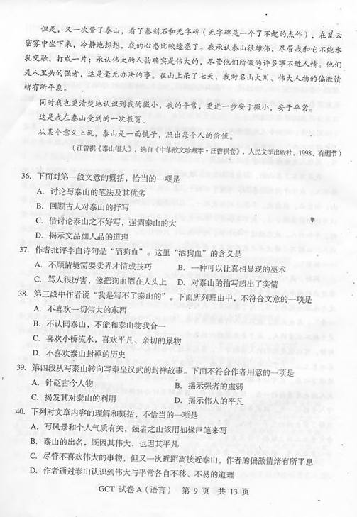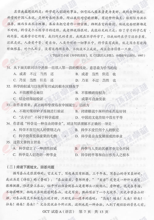 "2010年10月在職研究生GCT考試語(yǔ)文真題(A卷)" 相關(guān)文章推薦