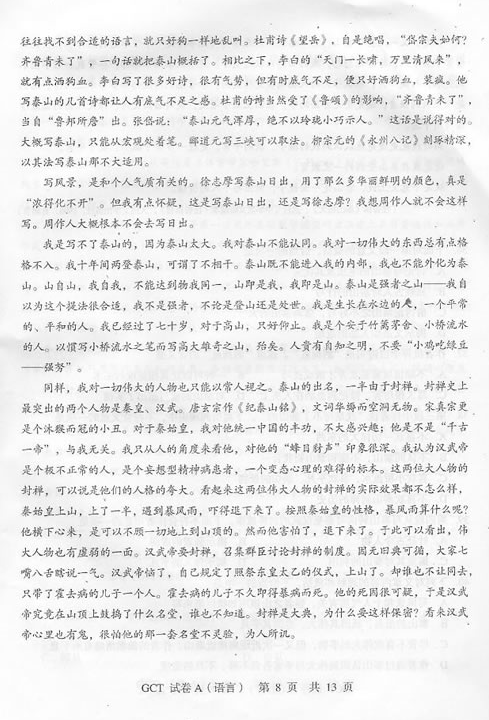 2010年10月在職研究生GCT考試語(yǔ)文真題(A卷)