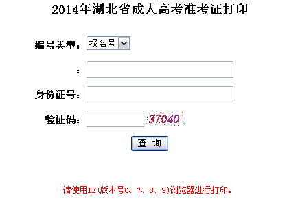 湖北2014年成人高考準(zhǔn)考證打印入口