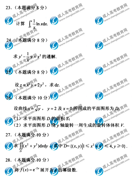 - 2014年湖北成人高考專升本高數(shù)(二)考試真題(標準版)