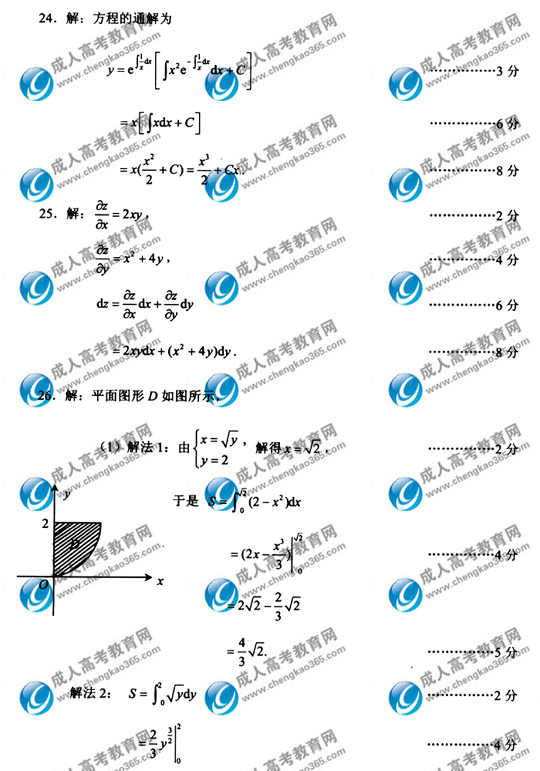 - 2014年湖北成人高考專升本高數(shù)(二)考試答案(標準版)