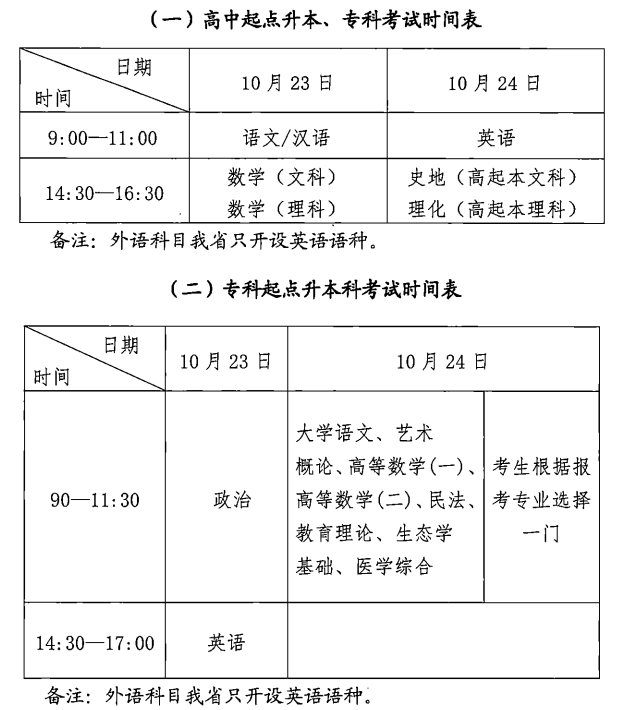 根據(jù)省考院發(fā)布的《2021年湖北成人高考報(bào)名考試通知》可以了解到,2021年湖北省成人高考報(bào)名采取網(wǎng)上報(bào)名、網(wǎng)上資格審核、網(wǎng)上繳費(fèi)的方式進(jìn)行。報(bào)名時(shí)間為9月1日8:30—9月7日17:00,全國(guó)成人高考時(shí)間為10月23日、24日,下面一起看下2021年湖北成人高考高起專(zhuān),高起本,專(zhuān)升本各科目考試安排表。
