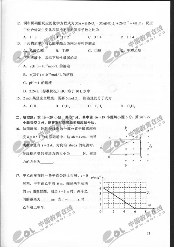 - 2012年湖北成人高考高起點(diǎn)物理化學(xué)試題及答案