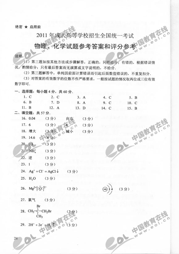 - 2014年湖北成人高考高起點(diǎn)物理化學(xué)考試答案(標(biāo)準(zhǔn)版)