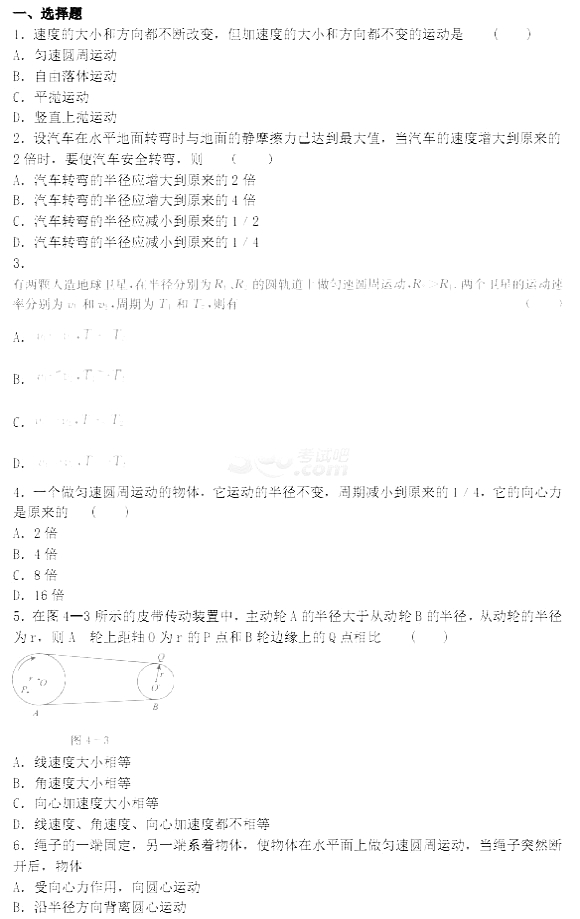 2015年湖北成考高起點(diǎn)物理第四章考點(diǎn)試題
