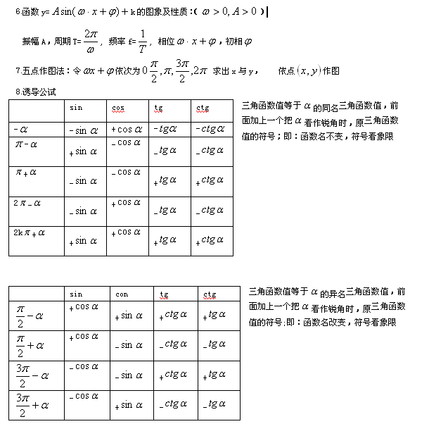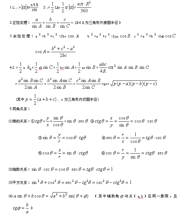 2012年成人高考高起點(diǎn)數(shù)學(xué)三角公式匯總