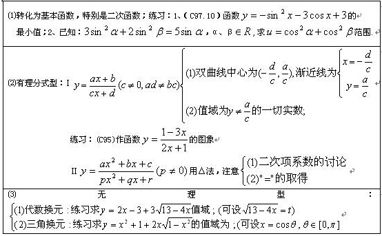 2015年湖北成考高起點數學(文)公式復習:函數的值域