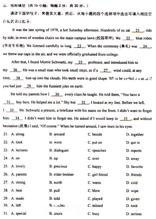 2009年湖北成考高起點(diǎn)英語真題及參考答案