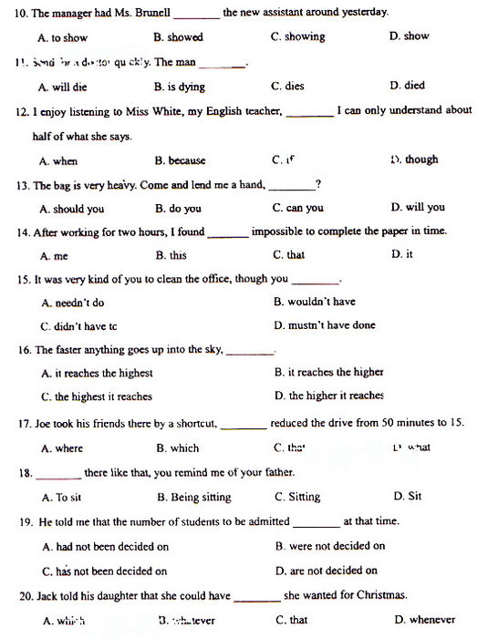 - 2014年湖北成人高考高起點(diǎn)英語考試真題(部分)