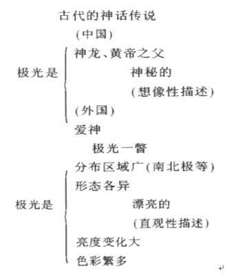 全文由三部分組成。從“古老的神話傳說”說到“極光一瞥”,再說到