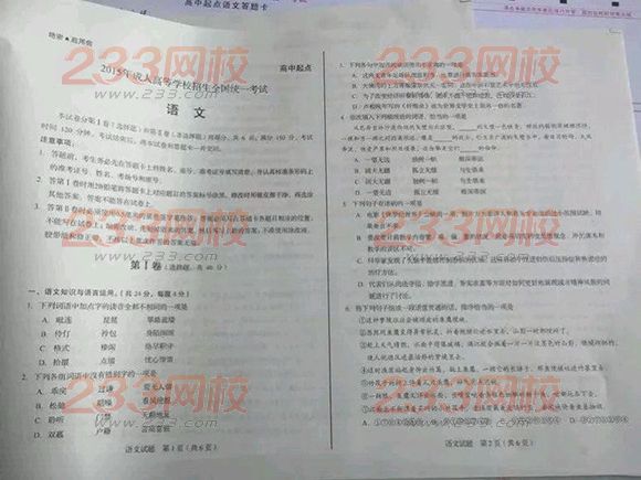 2015年湖北成人高考高起點語文試題(網友版1)