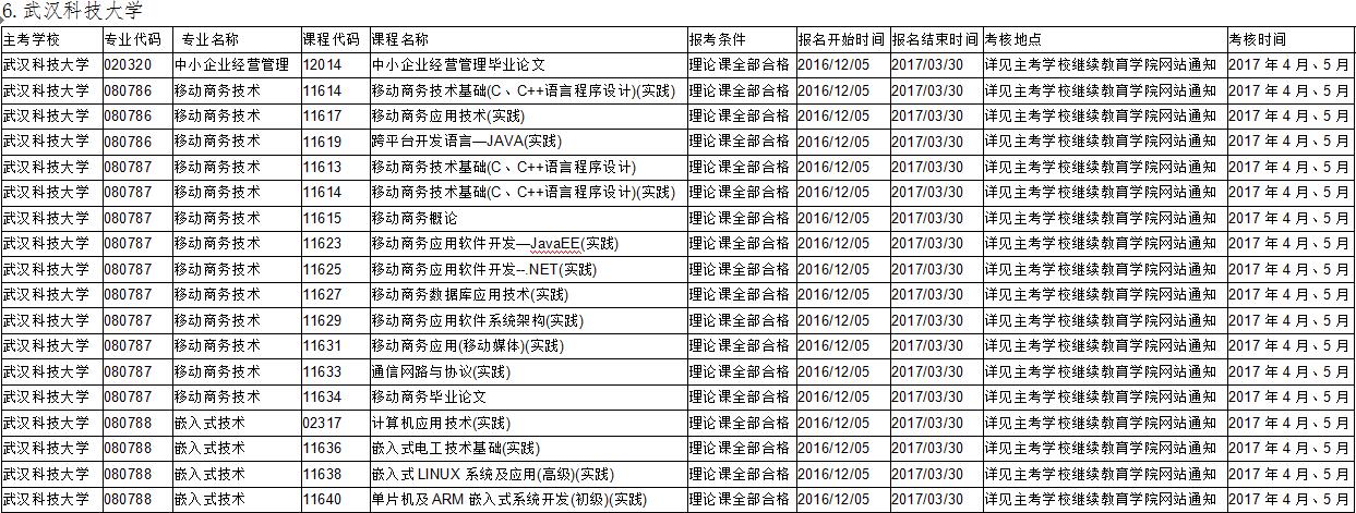 點擊下載查看完整文檔>>>2017年湖北自考面向社會開考專業(yè)武漢科技大學實踐課考核安排