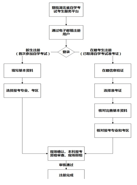 2017年湖北省自考網(wǎng)上注冊與現(xiàn)場確認(rèn)流程圖