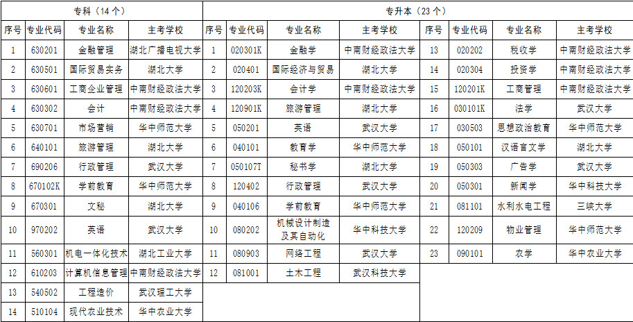 附件12018年湖北省高等教育自學(xué)考試面向社會(huì)開(kāi)考專業(yè)匯總表(專科、專升本)