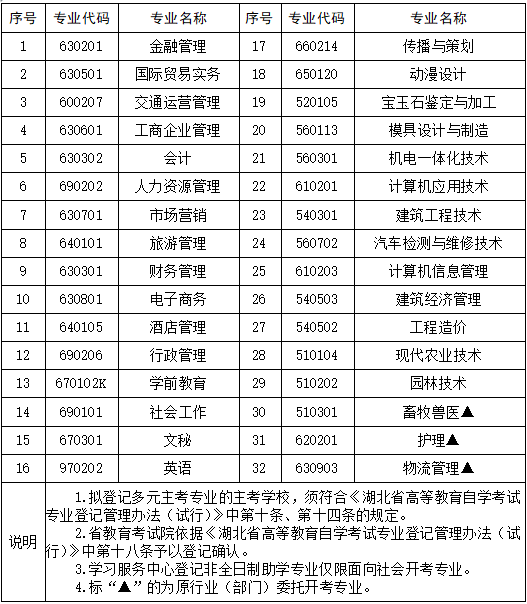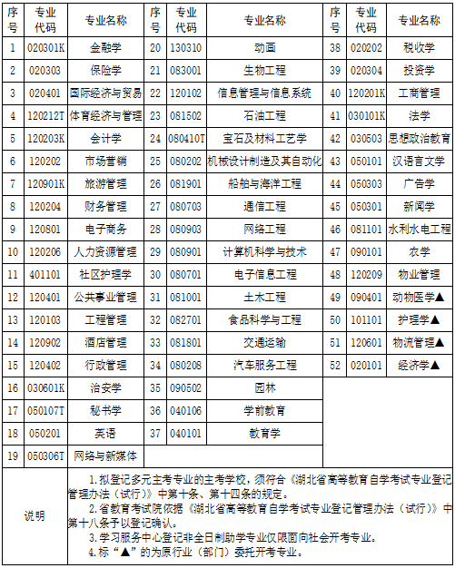 2018年湖北省高等教育自學(xué)考試非全日制助學(xué)專業(yè)登記目錄