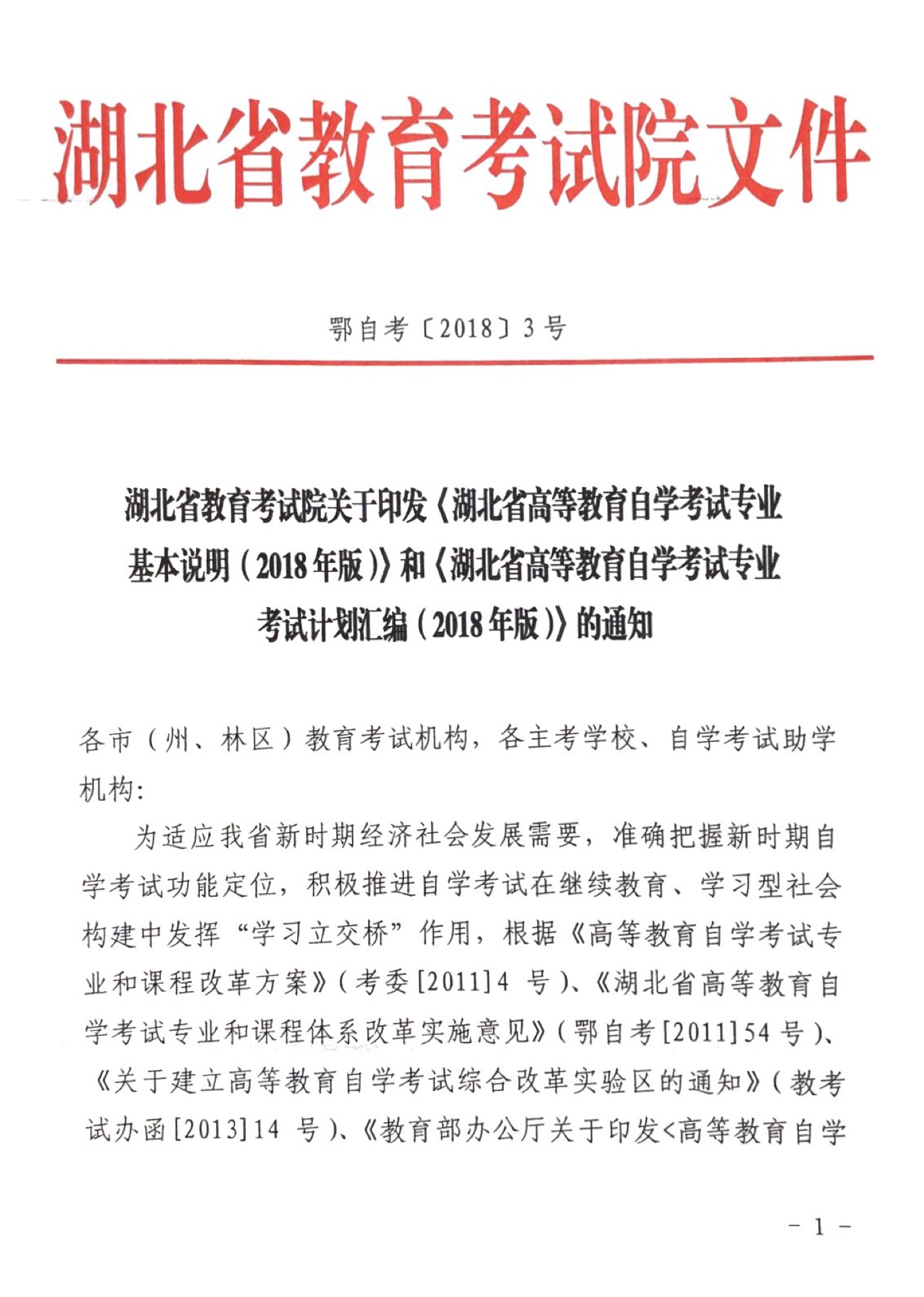 2018年湖北自考各課改專業(yè)考試計(jì)劃匯總