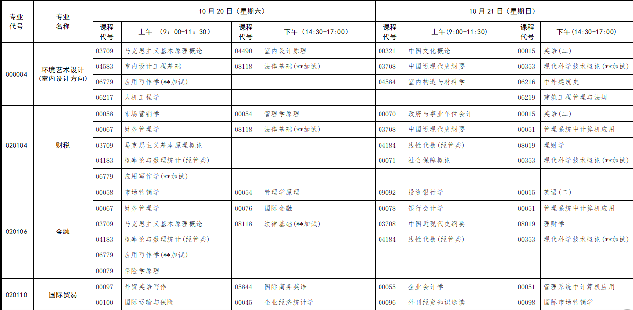 2018年10月湖北自考面向社會(huì)開考專業(yè)考試時(shí)間安排表(原專業(yè)考試計(jì)劃專升本)