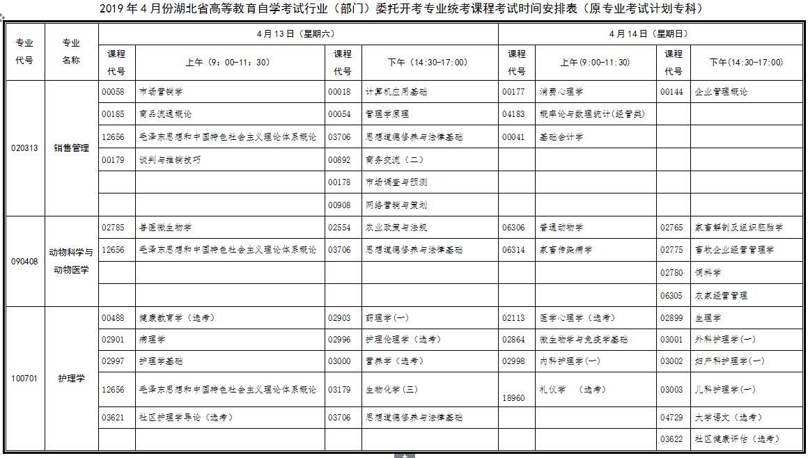 2019年4月湖北自考行業(yè)(部門)委托開考專業(yè)統(tǒng)考課程考試時間安排表(原專業(yè)考試計劃專科)
