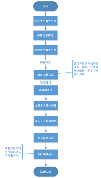 一是個人基本信息,包括考生姓名、身份證、照片、住址等;二是個人報考信息,包括報讀專業(yè)、主考學(xué)校、考區(qū)等信息。考生完成此兩部分內(nèi)容的過程即稱為考生學(xué)籍注冊,注冊后經(jīng)過審批或現(xiàn)場確認(rèn)后即注冊完成。