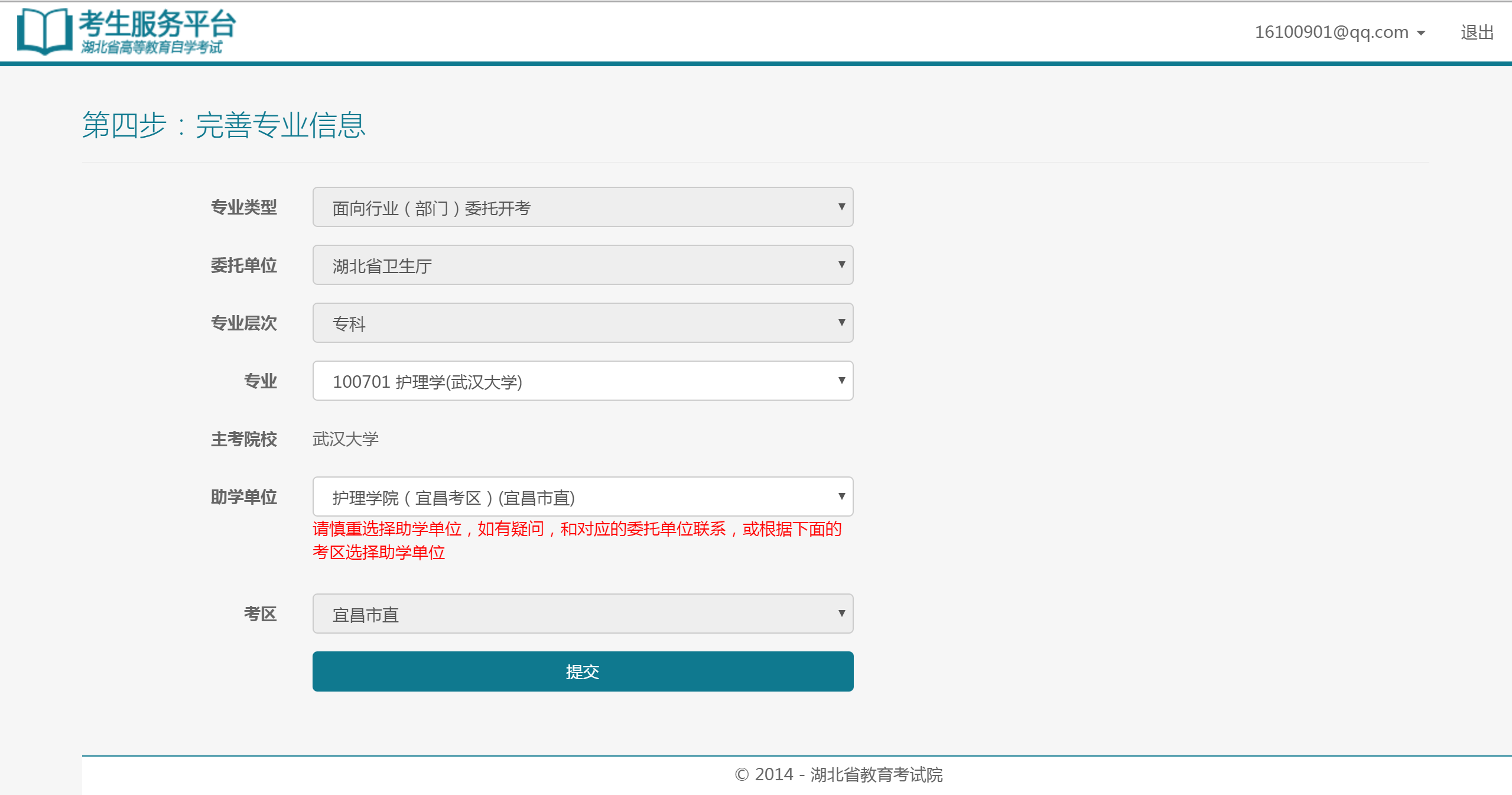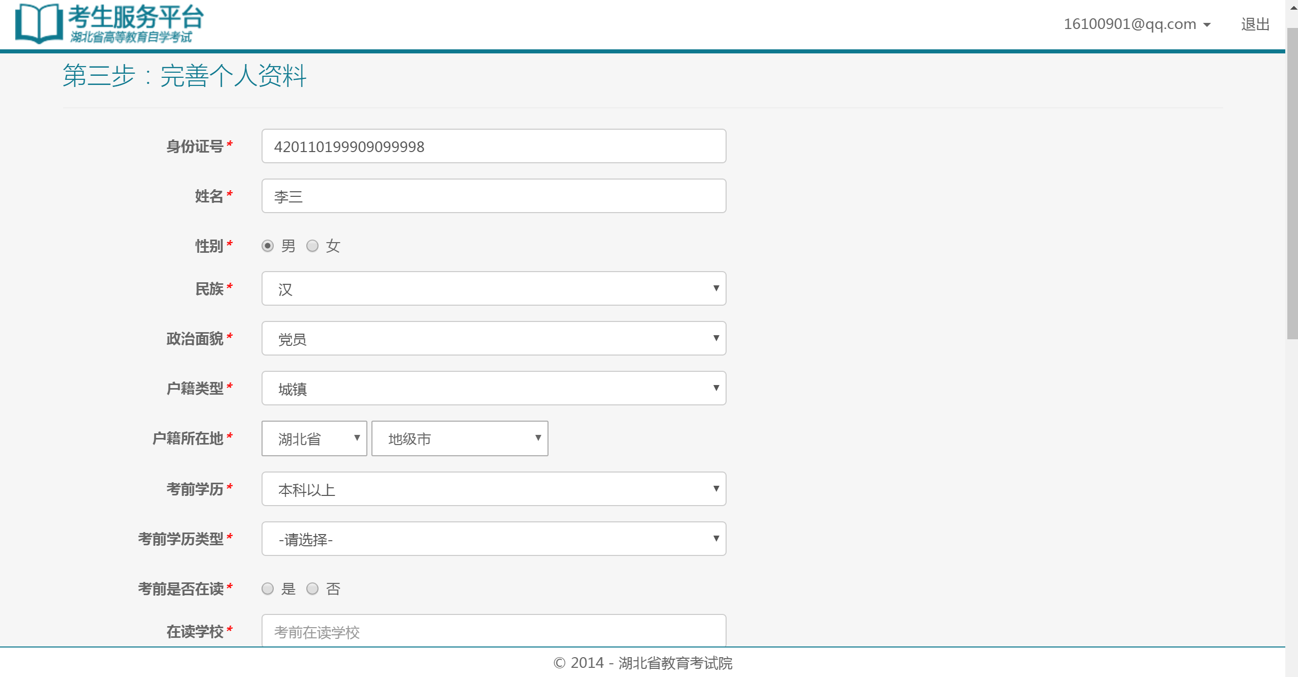 選擇一條在籍信息后,平臺會調出此條在籍信息的全部信息,考生完善修改信息