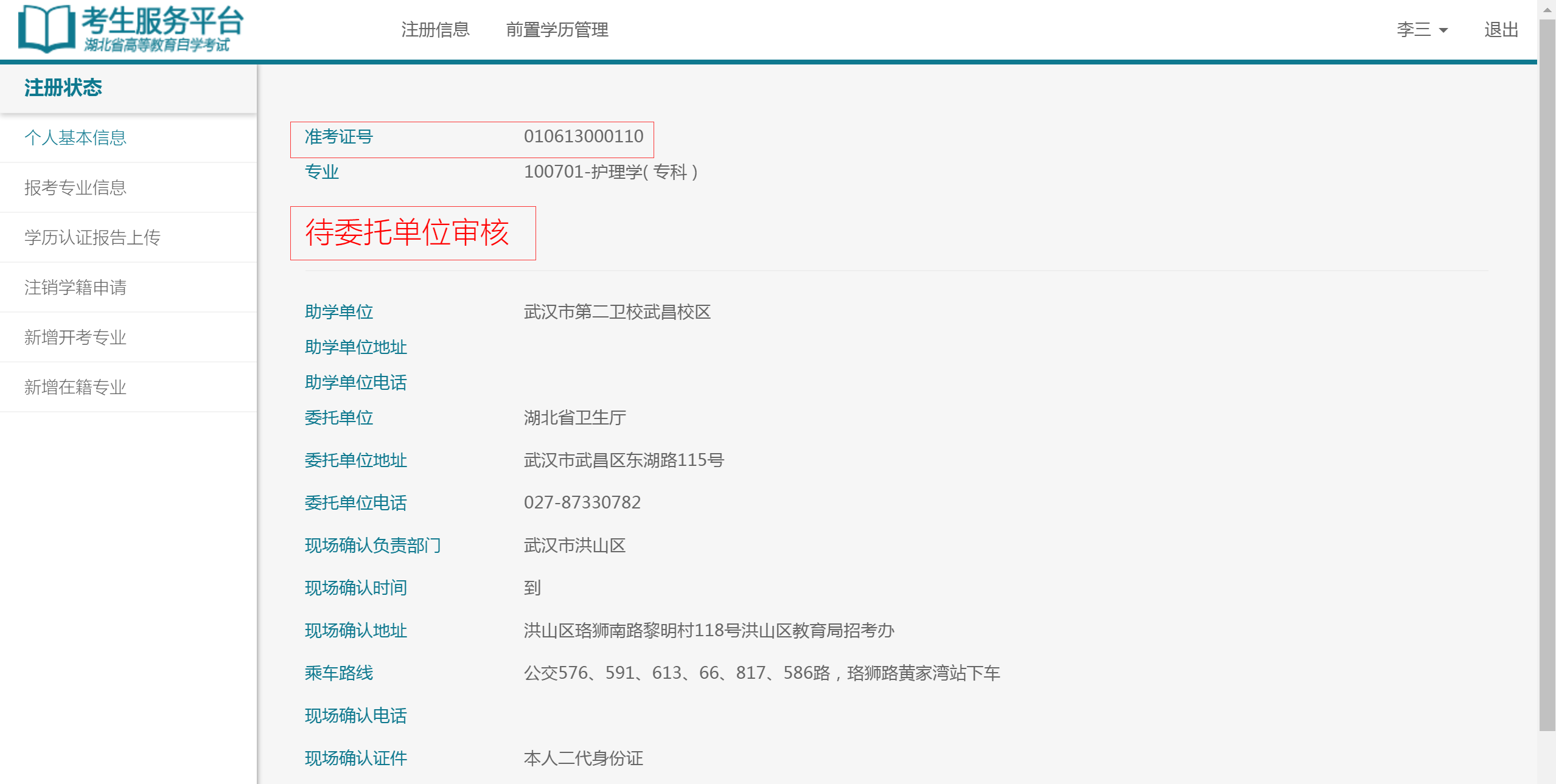 ? 在籍驗證是通過考生姓名、身份證號和準考證來查詢考生以往的湖北自考學籍信息