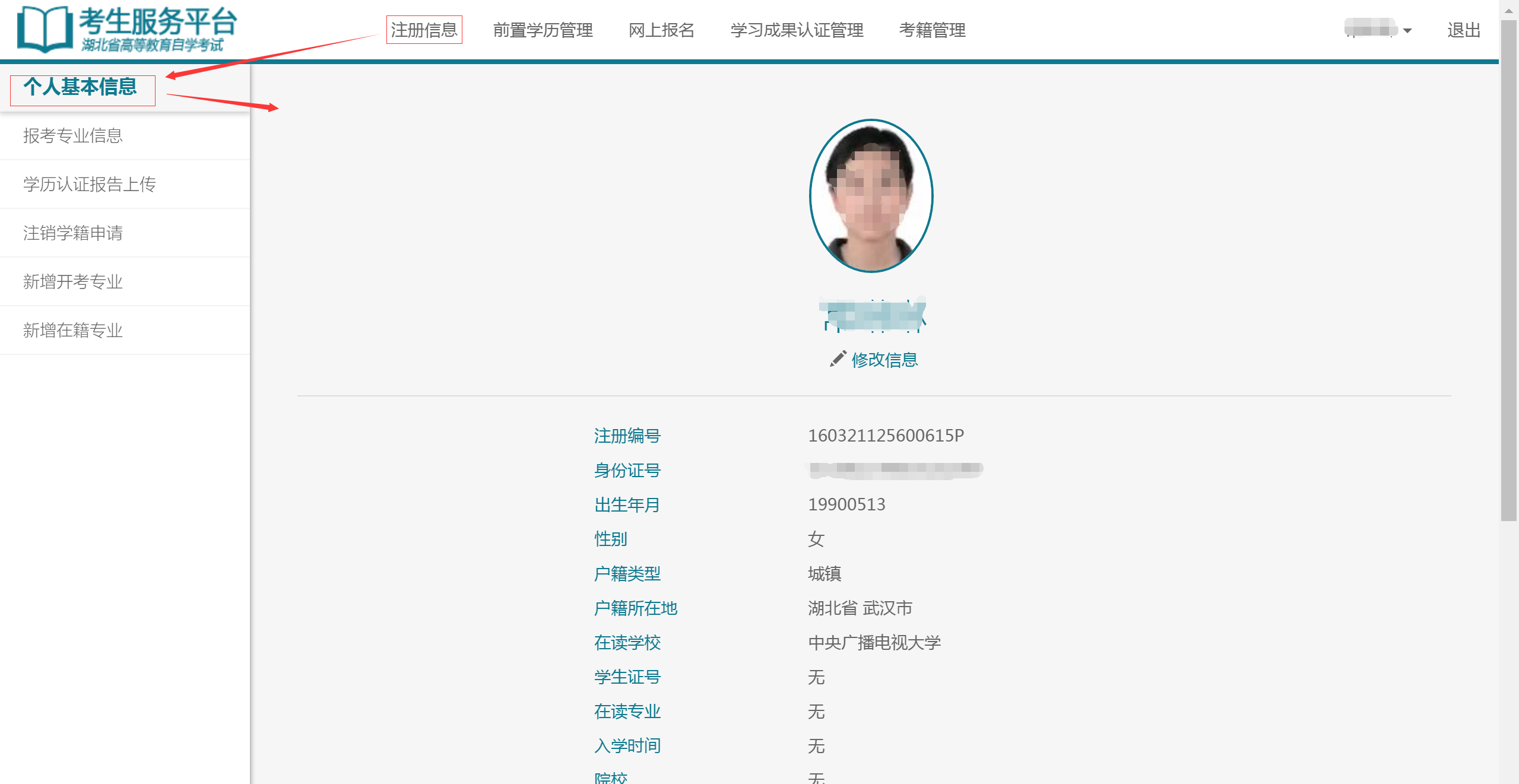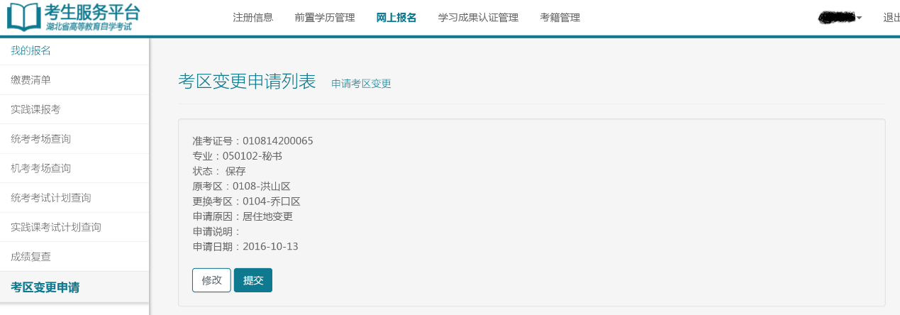 自考服務(wù)平臺(tái)處于“注冊(cè)完成”階段的考生如何修改報(bào)考信息?