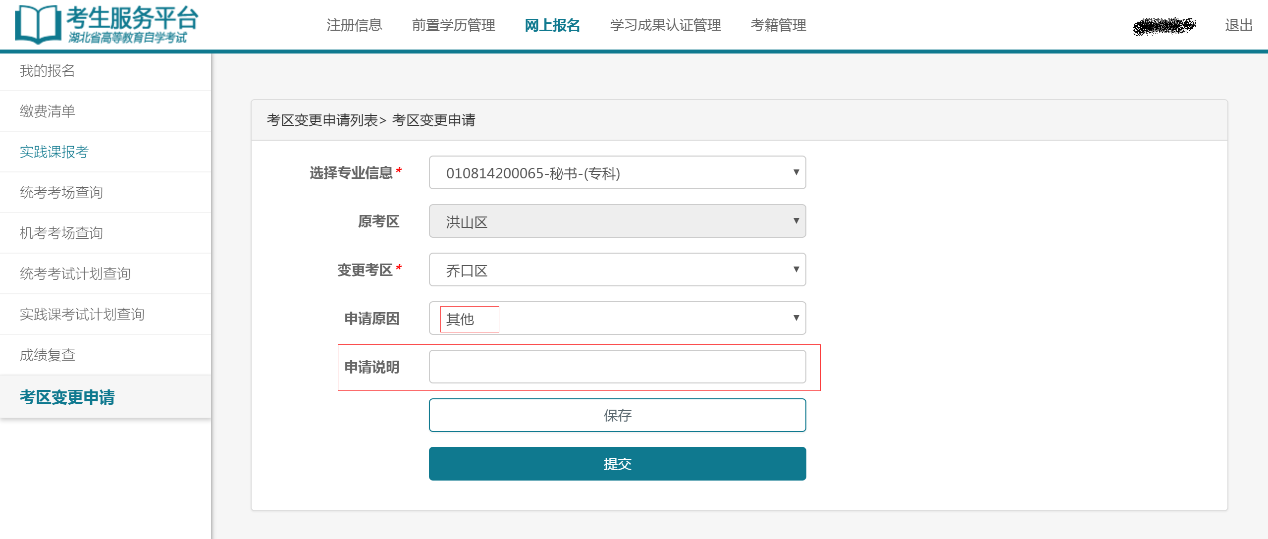 2)點(diǎn)擊申請(qǐng)考區(qū)變更按鈕,進(jìn)入考區(qū)變更申請(qǐng)頁(yè)面: