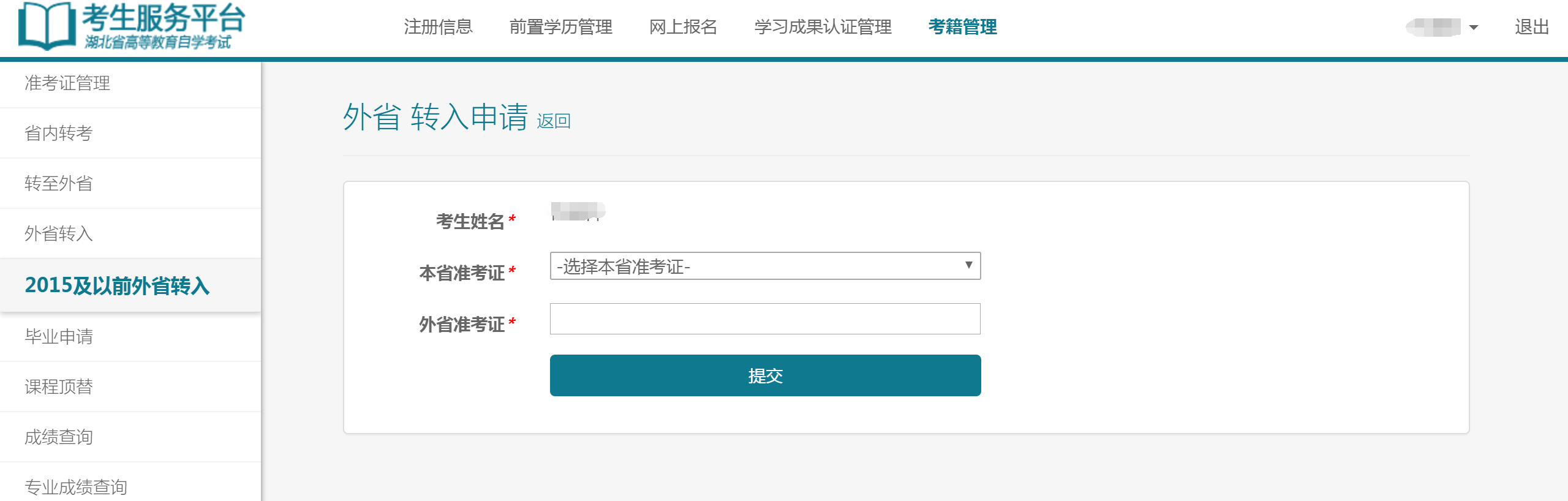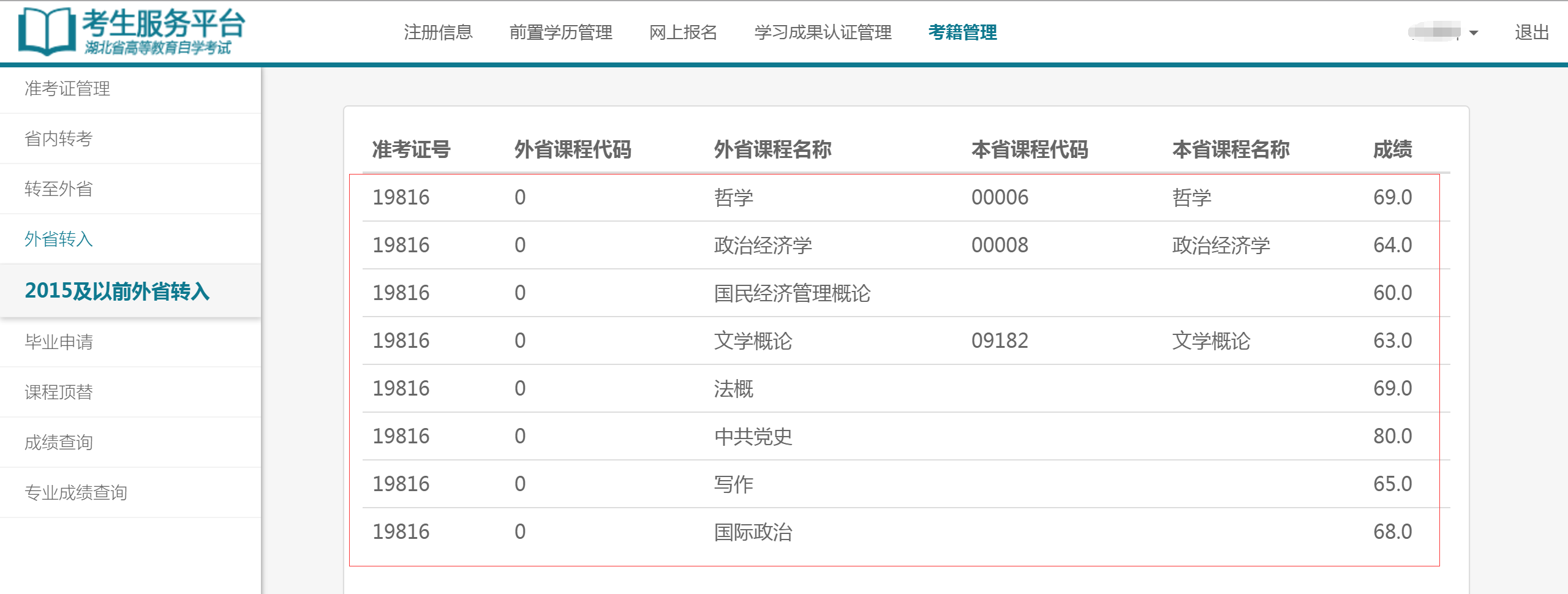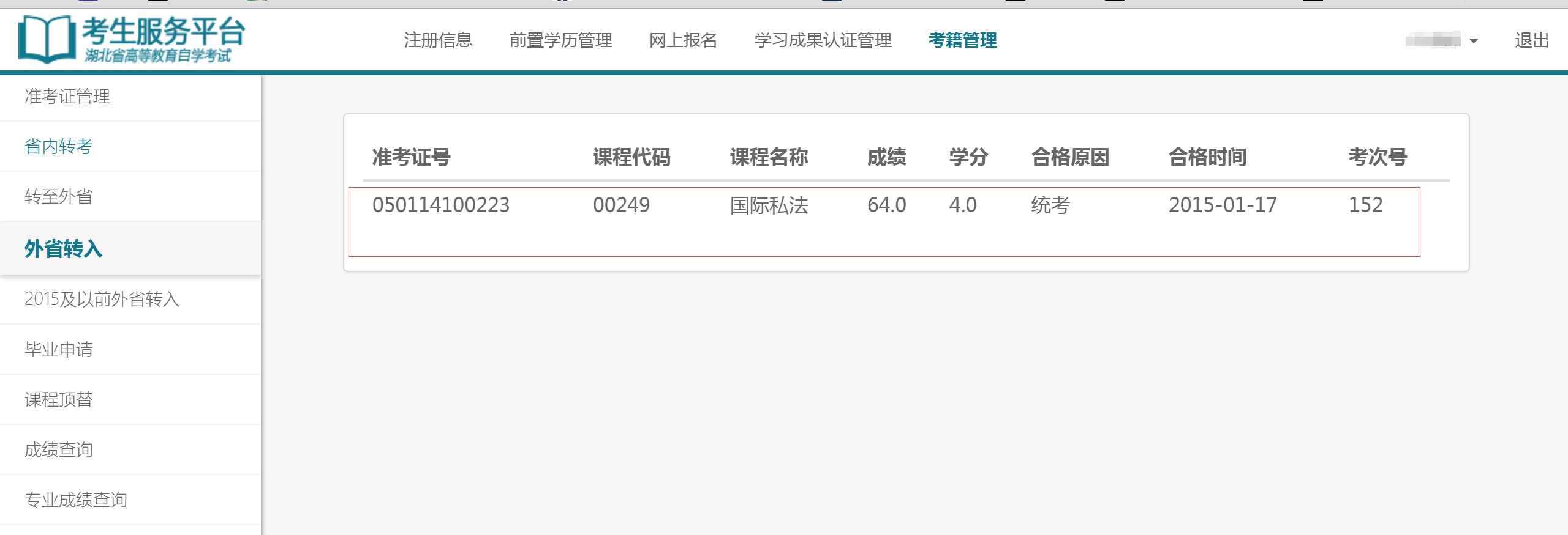 在自考考生服務平臺上如何將外省自考成績轉到湖北省?