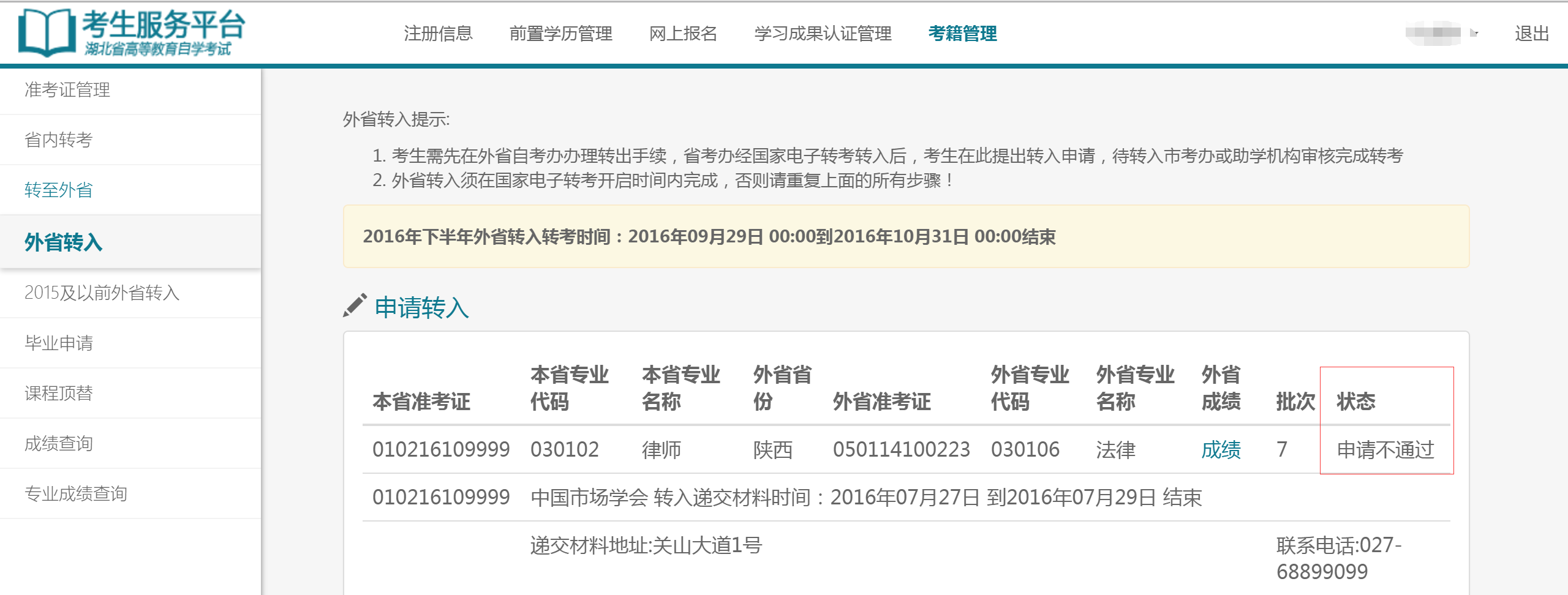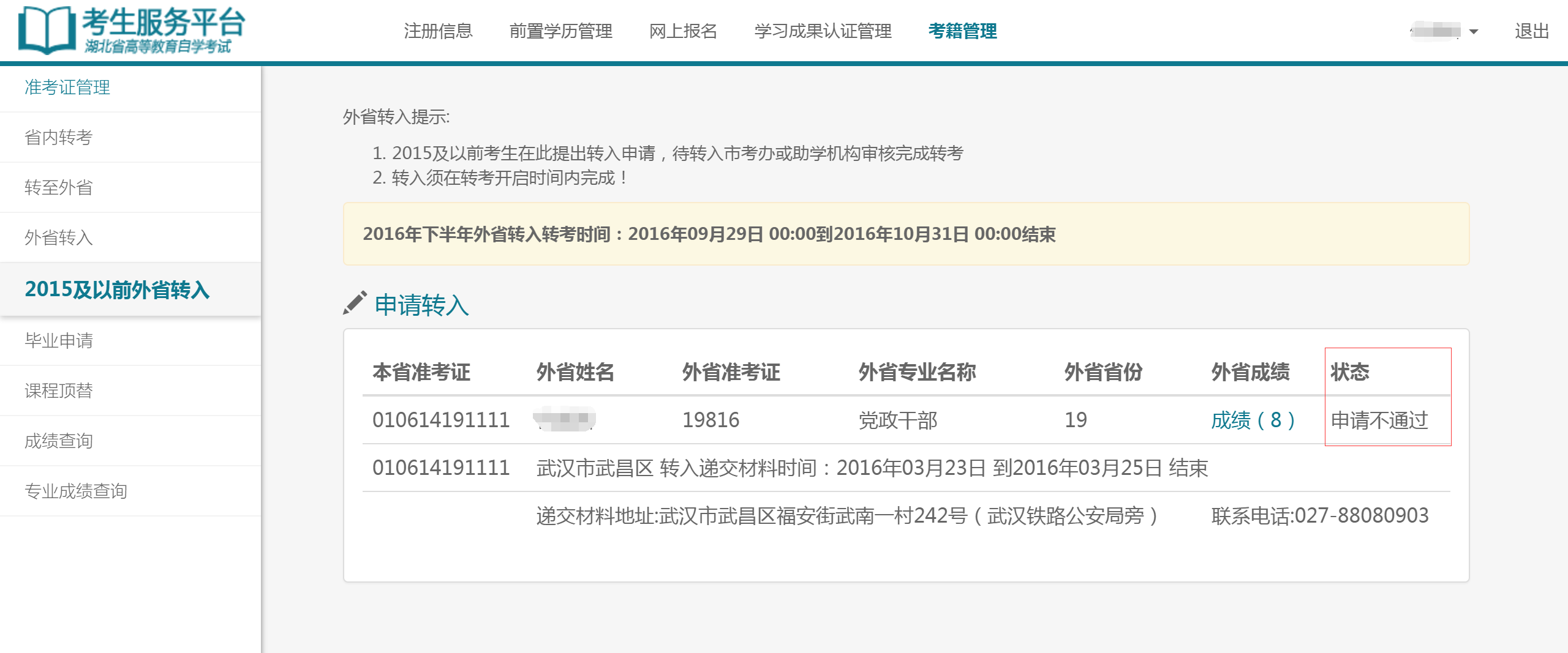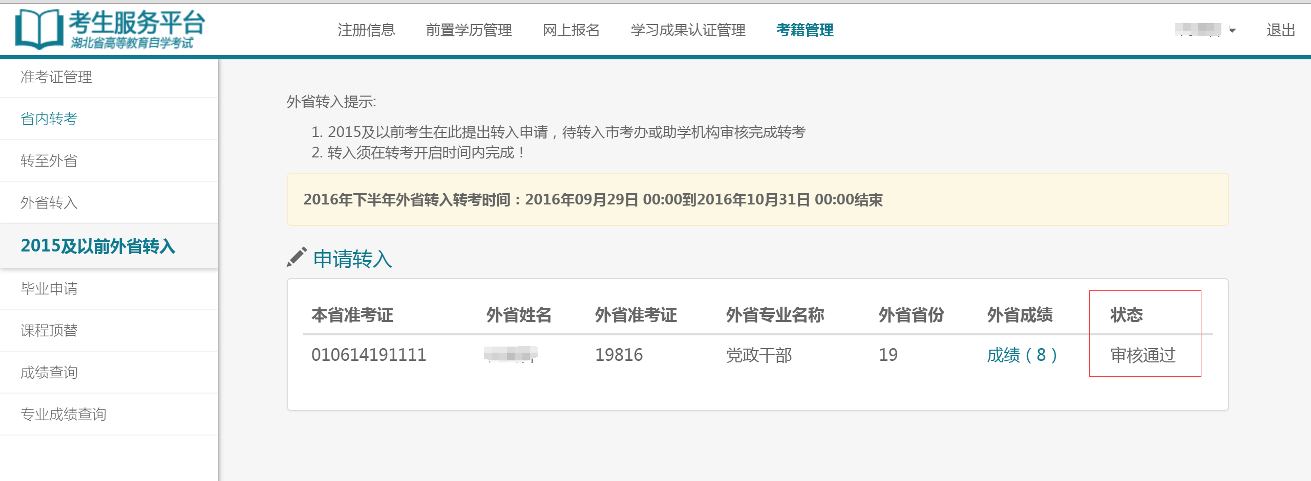 在自考考生服務平臺上如何將外省自考成績轉到湖北省?