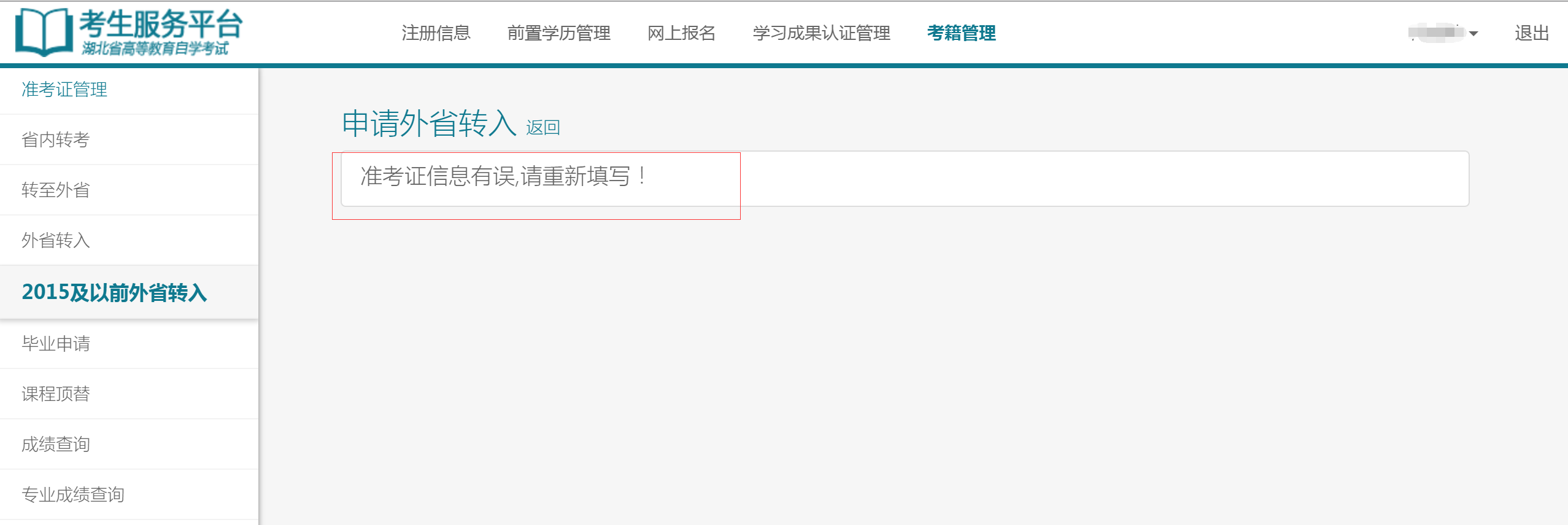 說明外省準考證信息有誤或是 2015 年及以前沒有在外省申辦過轉至外省或是外省姓名與本省注冊的不一致。