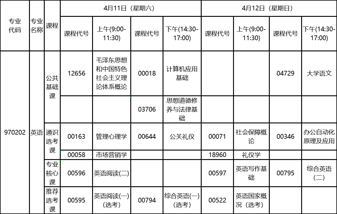 2020年4月湖北自考專科英語專業(yè)考試計劃: