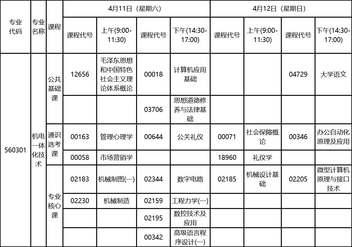 2020年4月湖北自考專科機(jī)電一體化技術(shù)專業(yè)考試計劃: