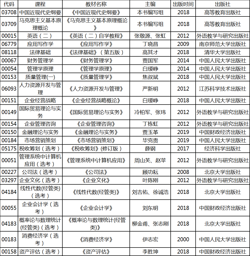 2020年4月湖北自考專升本工商管理專業(yè)考試教材: