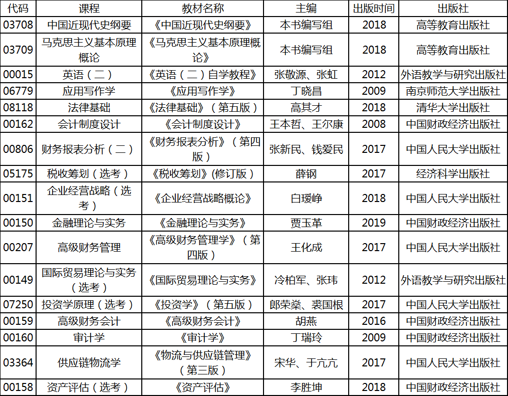 2020年4月湖北自考會計學(xué)專業(yè)考試時間和考試教材(專升本)