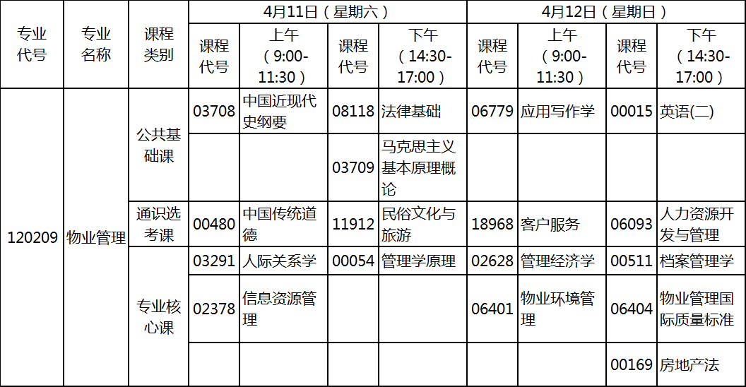 2020年4月湖北自考專升本物業(yè)管理專業(yè)考試計劃: