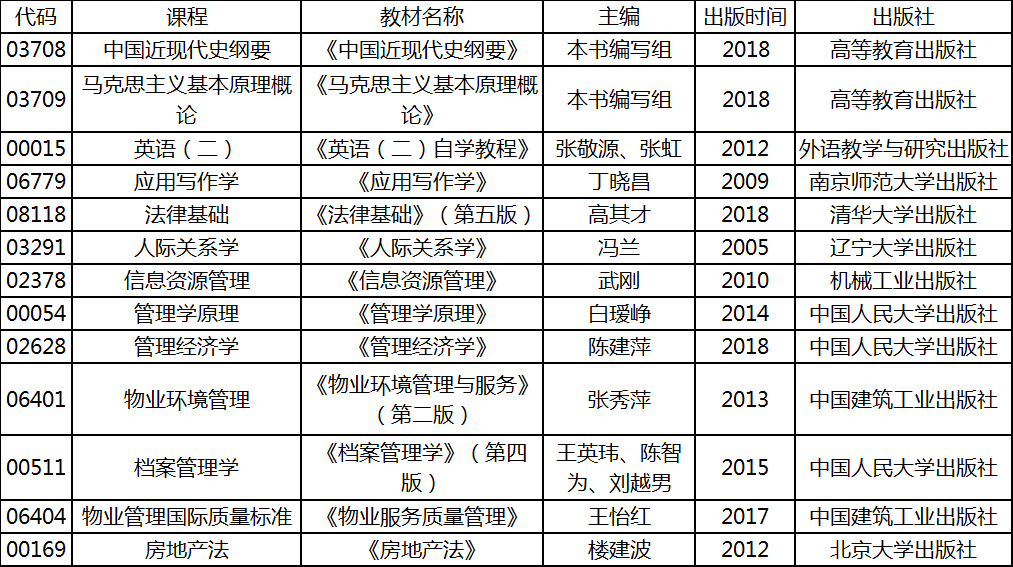 2020年4月湖北自考專升本物業(yè)管理專業(yè)考試計劃和考試教材