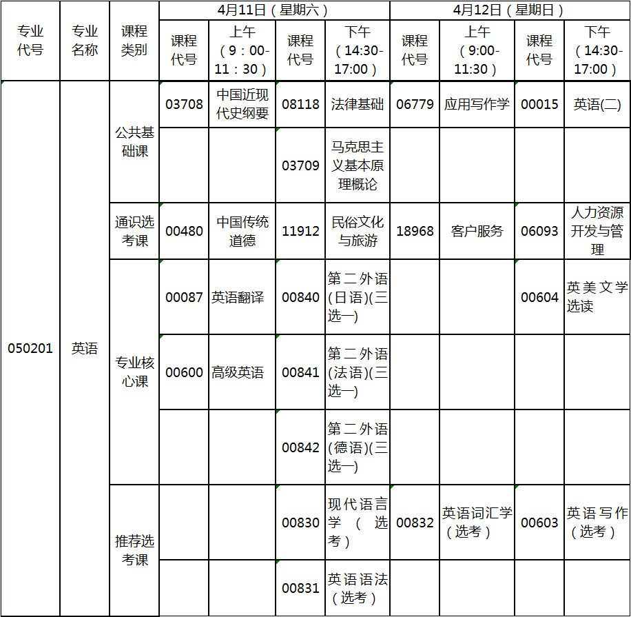 2020年4月湖北自考專升本英語專業(yè)考試計(jì)劃: