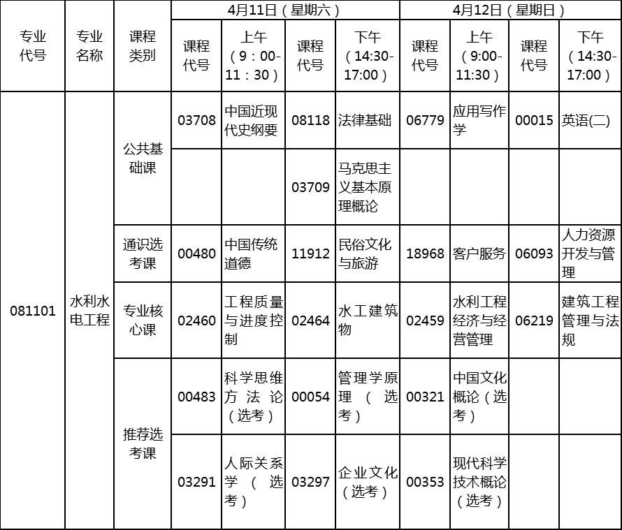 2020年4月湖北自考專升本水利水電工程專業(yè)考試計(jì)劃: