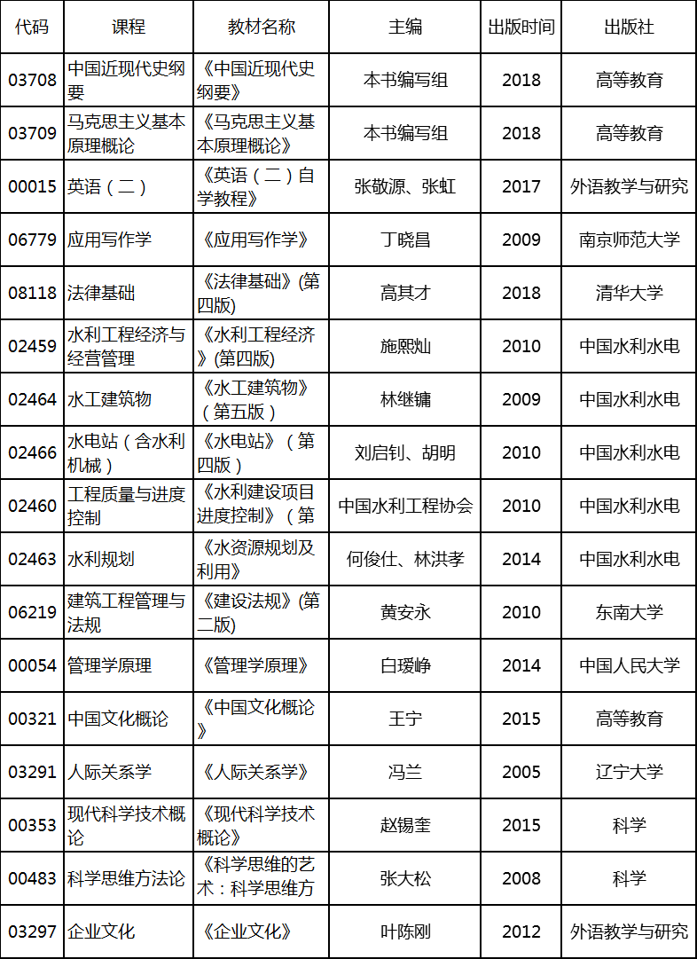 2020年4月湖北自考水利水電工程專業(yè)考試時間和考試教材(專升本)
