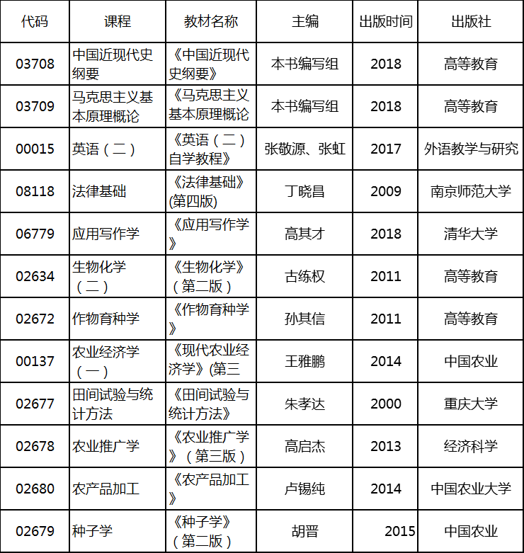 2020年4月湖北自考專升本農(nóng)學(xué)專業(yè)考試教材: