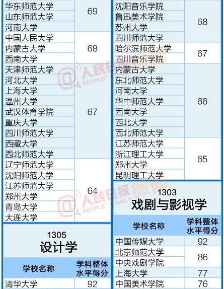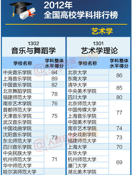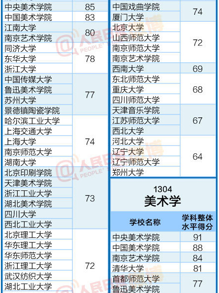 以下為全國高校藝術(shù)學(xué)類一級學(xué)科排行榜