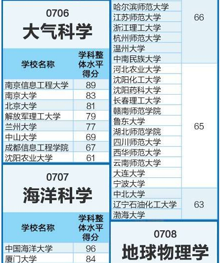 教育部:全國高校理學類學科排行榜