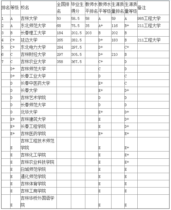 湖北高考網(wǎng)獲悉,中國管理科學(xué)研究院《中國大學(xué)評價》課題組組長武書連,在《挑大學(xué)選專業(yè)--2015高考志愿填報指南》中,列出了2015年中國734所普通高校的本科畢業(yè)生質(zhì)量排行榜,供考生、考生家長、用人單位及教育工作者參考。以下為2015吉林省大學(xué)本科畢業(yè)生質(zhì)量排行榜。
