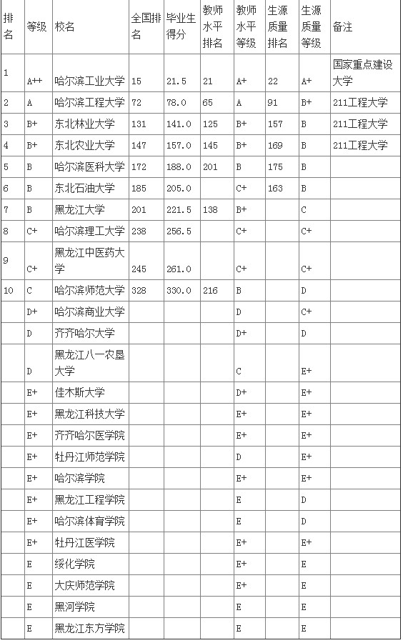 2015年黑龍江省大學(xué)本科畢業(yè)生質(zhì)量排行榜
