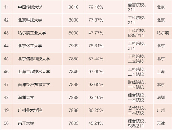 實(shí)在不行,要想高薪還能靠所學(xué)專業(yè)取勝。上榜的100強(qiáng)大學(xué)中,除卻大學(xué)所在地和大學(xué)的級(jí)別類型,工科、財(cái)經(jīng)、語(yǔ)言、藝術(shù)等專業(yè)性傳統(tǒng)強(qiáng)校也是想畢業(yè)后拿高薪報(bào)考大學(xué)選擇的重點(diǎn)之一。100強(qiáng)中,有11所財(cái)經(jīng)院校、7所語(yǔ)言院校、5所藝術(shù)院校,這些專業(yè)性傳統(tǒng)強(qiáng)校中絕大部分并非985或211大學(xué),但都屬于這個(gè)學(xué)科中的佼佼者。