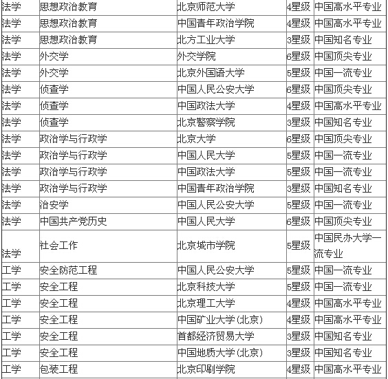| 管理學(xué) | 行政管理 | 中國(guó)政法大學(xué) | 3星級(jí) | 中國(guó)知名專業(yè) |